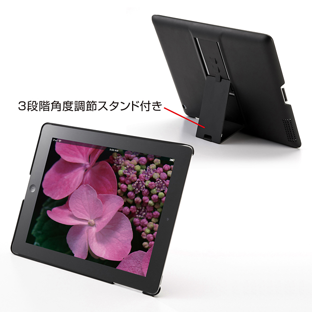 3段階で角度調節できるスタンド機能付きiPad(第2/3/4世代) ハードカバー