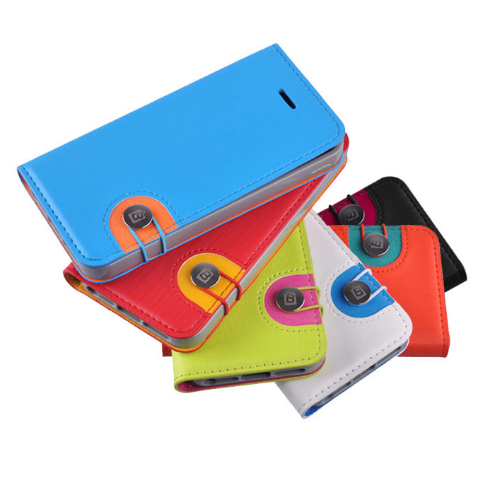 iPhone5/5s カラフルカバー虹型で固定ボタン付き手帳型全面保護カバー