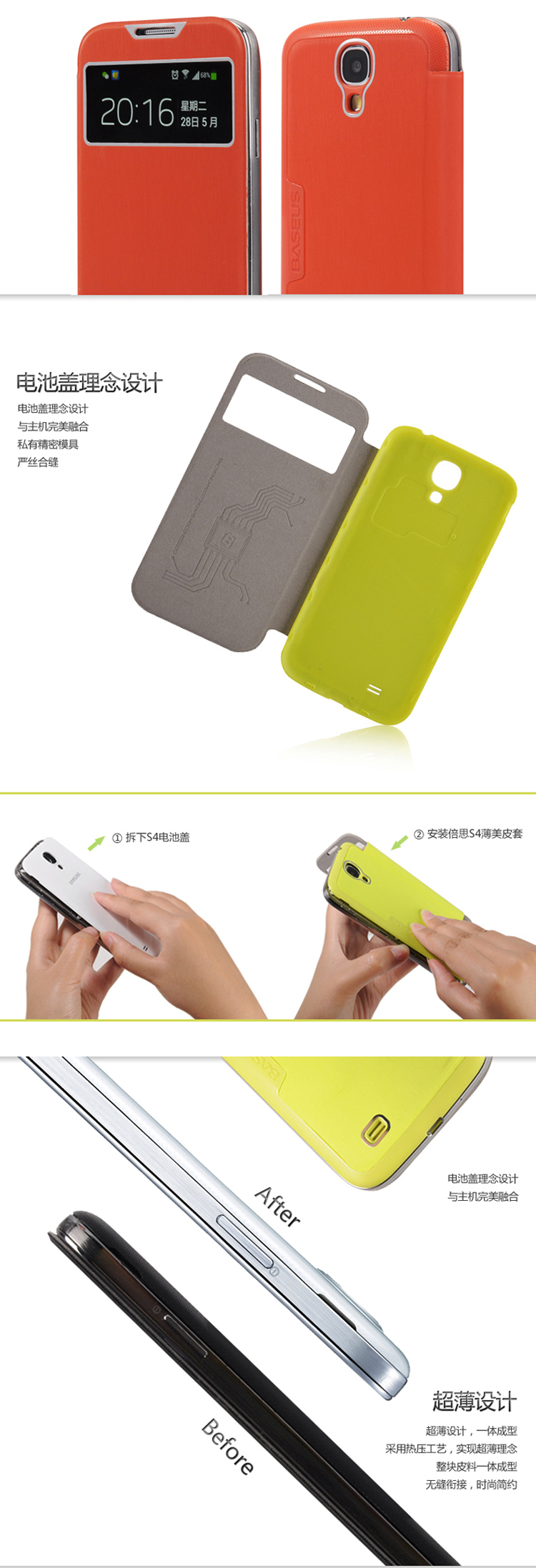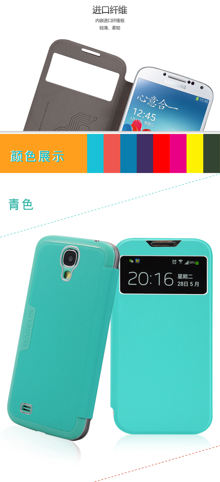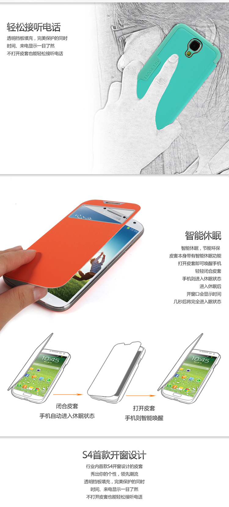 Samsung GALAXY S4 カバー 智能休眠 来电显示