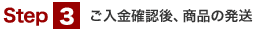 ご注文が正常に完了されますと、サーバーより「注文確認|振込先のご案内」メールが自動発信されますので1週間以内にお振込をお願いいたします。