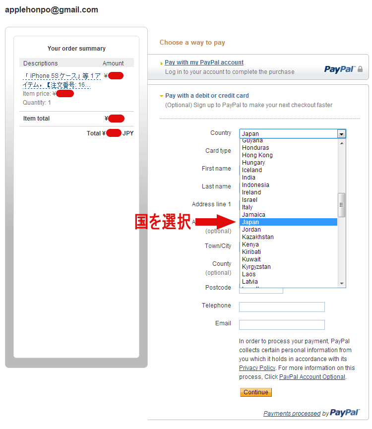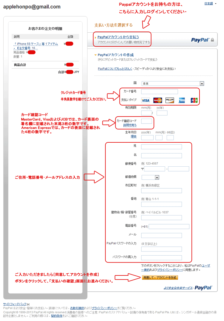2.Paypalアカウントをお持ちでない場合の情報入力ページ